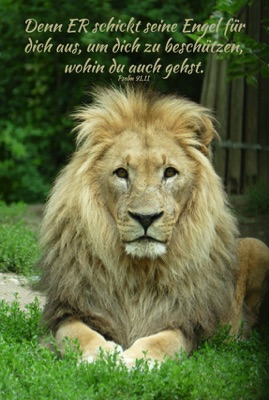 Löwe mit Psalm 91,11